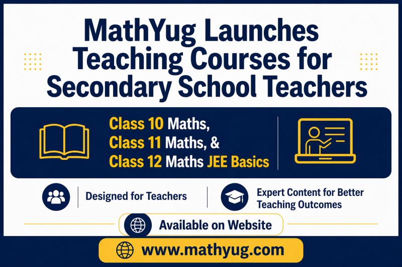 You can edit or delete your press release MathYug Launches Teaching Courses for Class 10, Class 11 & Class 12 Maths Teachers with JEE Basics Integration here