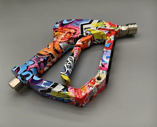 The newly launched hydrographic transfer printing spray guns include several classic models, with the main body constructed of high-strength metal and key interfaces using brass/stainless steel fittings. They are pressure- and corrosion-resistant, suitable for various high-pressure cleaning scenarios, meeting the needs of industrial cleaning, vehicle washing, and other operations. The gun body uses a full-page hydrographic transfer printing graffiti process, with high color saturation and diverse pattern styles, ranging from street style to personalized IP elements, completely breaking the monotonous appearance of traditional industrial tools.