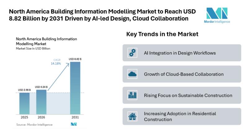 According to Mordor Intelligence, the North America building information modelling market size was valued at USD 3.98 billion in 2025 and is estimated to grow from USD 4.54 billion in 2026 to reach USD 8.82 billion by…