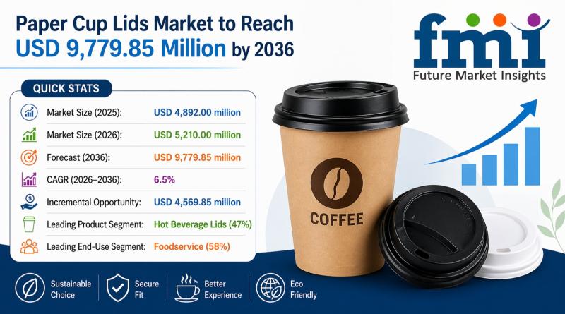 Paper Cup Lids Market to Reach USD 9,779.85 Million by 2036, Driven by Plastic Ban Regulations and Rising Demand for Sustainable Foodservice Packaging