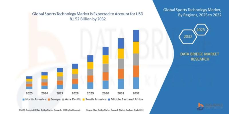 As per Data Bridge Market Research analysis, the Sports Technology Market was estimated at USD 22.87 billion in 2025. The market is expected to grow from **USD 27.42 billion in 2026 to USD 81.52 billion in 2032, at a CAGR of 19.90% during the forecast period with driven by the rising demand for advanced analytics, wearable technologies, and digital fan engagement solutions.