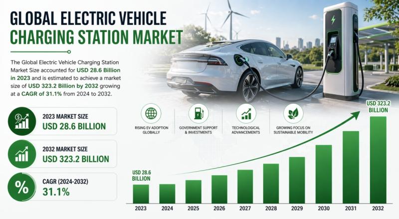 Electric Vehicle Charging Station Market Size to Reach USD 323.2 Billion by 2032 …
