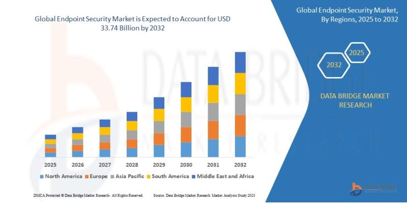 As per Data Bridge Market Research analysis, the Endpoint Security Market was estimated at USD 19.81 billion in 2025. The market is expected to grow from **USD 21.38 billion in 2026 to USD 33.74 billion in 2032, at a CAGR of 7.90% during the forecast period with driven by the rising demand for advanced cybersecurity solutions, increasing adoption of remote work environments, and stringent regulatory frameworks for data protection.