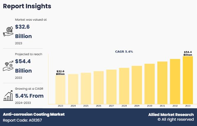 Allied Market Research published a report, titled, "Anti-corrosion Coating Market by Type (Epoxy, Polyurethane, Acrylic, Alkyd, Zinc, Chlorinated Rubber, and Others), Technology (Solvent-Borne, Waterborne, Powder Coating, and Others), and End-Use Industry (Marine, Oil and Gas, Industrial, Construction, Energy, Automotive, and Others): Global Opportunity Analysis and Industry Forecast, 2024-2033". According to the report, the anti-corrosion coating market was valued at $32.6 billion in 2023, and is estimated to reach $54.4 billion…