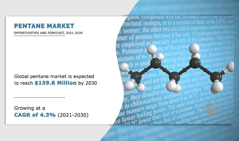 Allied Market Research recently published a report, titled, "Pentane Market by Type (n-Pentane, Isopentane, and Neopentane), and Application (Blowing Agent, Electric Cleansing, Chemical Solvent, and Others): Global Opportunity Analysis and Industry Forecast, 2021-2030". As per the report, the global pentane industry was accounted for $105.7 million in 2020, and is expected to reach $159.8 million by 2030, growing at a CAGR of 4.3% from 2021 to 2030.