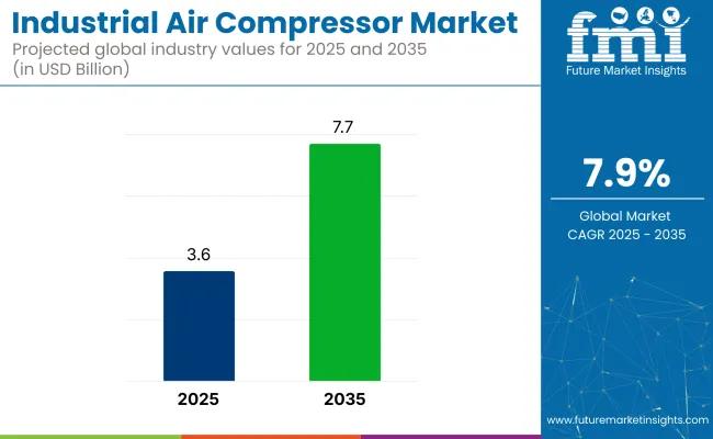 Industrial Air Compressor Market to Reach USD 7.7 Billion by 2035, Driven by Smart Manufacturing, Energy Efficiency, and AI-Powered Systems