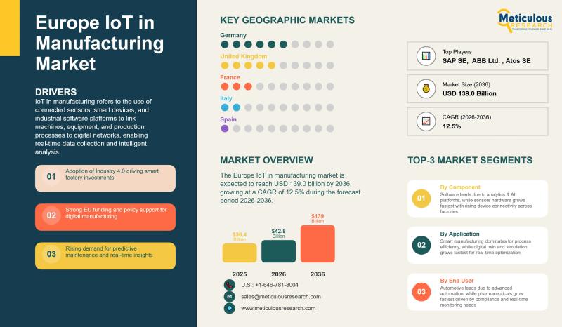 Europe IoT in Manufacturing Market to Reach USD 139.0 Billion by 2036