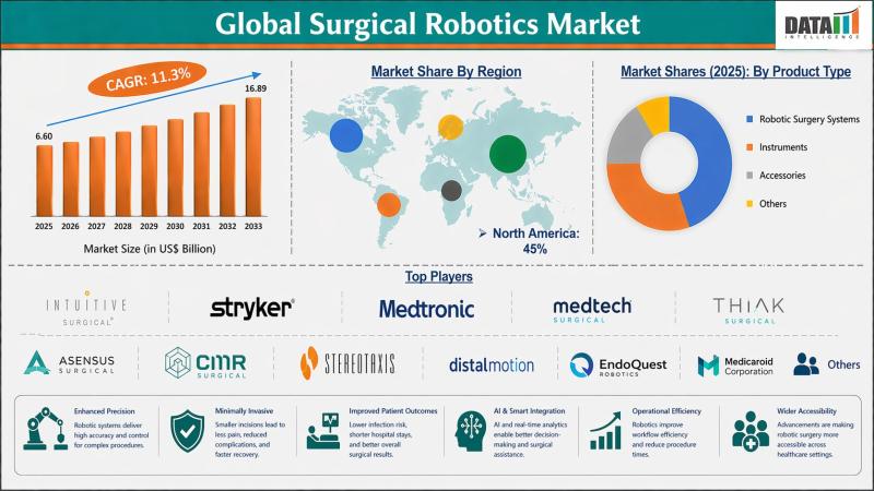 Surgical Robotics Market to Reach USD 16.89 Billion by 2033 at 11.3% CAGR; North …