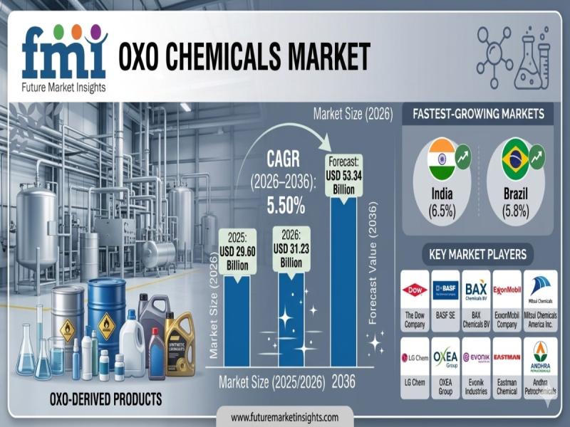The global oxo chemicals market is entering a transformation phase as industries shift from volume-based sourcing to performance-driven procurement frameworks. According to the latest analysis, the market is valued at USD 31.23 billion in 2026 and is projected to reach USD 53.34 billion by 2036, expanding at a CAGR of 5.50%. The sector is expected to generate an incremental opportunity of USD 22.11 billion over the forecast period.