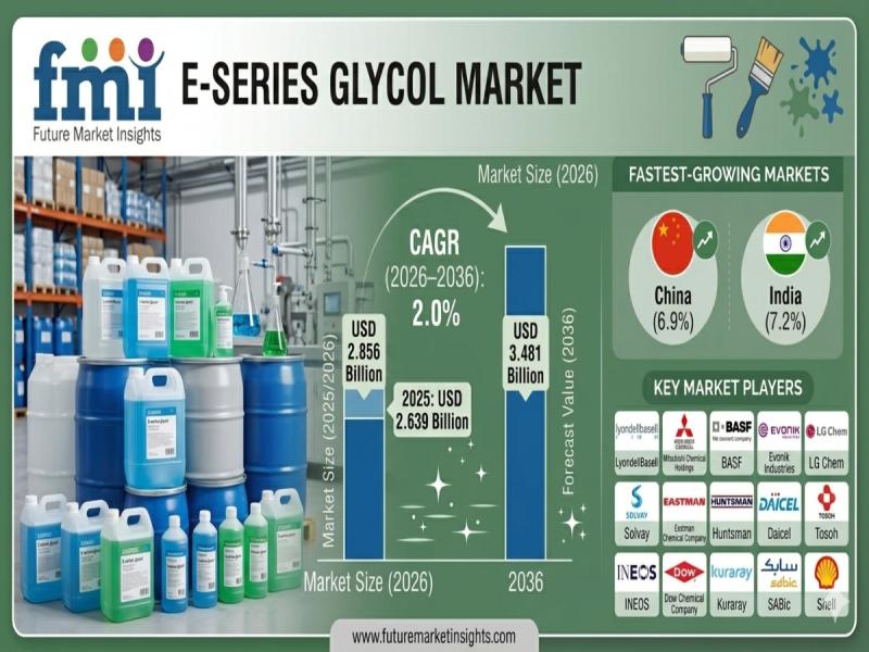 The global E-series glycol ether market is entering a steady growth phase as industries transition toward compliant, low-VOC solvent systems. According to the latest analysis, the market is valued at USD 2.856 billion in 2026 and is projected to reach USD 3.481 billion by 2036, expanding at a CAGR of 2.0%. The sector is expected to generate an incremental opportunity of USD 0.625 billion over the forecast period.