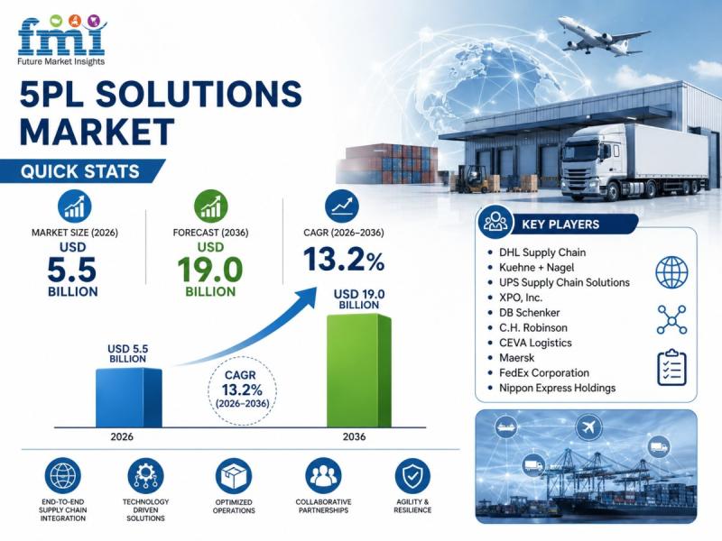 The global 5PL solutions market is entering a rapid expansion phase as supply chains evolve from fragmented execution models to unified, intelligence-driven orchestration systems. According to the latest analysis, the market is valued at USD 5.5 billion in 2026 and is projected to reach USD 19.0 billion by 2036, expanding at a CAGR of 13.2%. The sector is expected to generate an incremental opportunity of USD 13.5 billion over the…