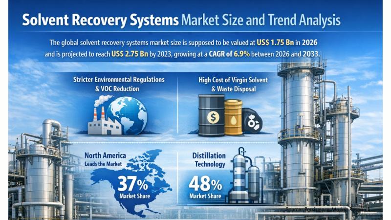 The global solvent recovery systems market is steadily gaining traction as industries worldwide prioritize sustainability, cost optimization, and regulatory compliance. According to the latest study by Persistence Market Research, the market is expected to be valued at US$ 1.75 Bn in 2026 and is projected to reach US$ 2.75 Bn by 2033, growing at a CAGR of 6.9% between 2026 and 2033. Increasing industrialization, coupled with stringent environmental regulations regarding…