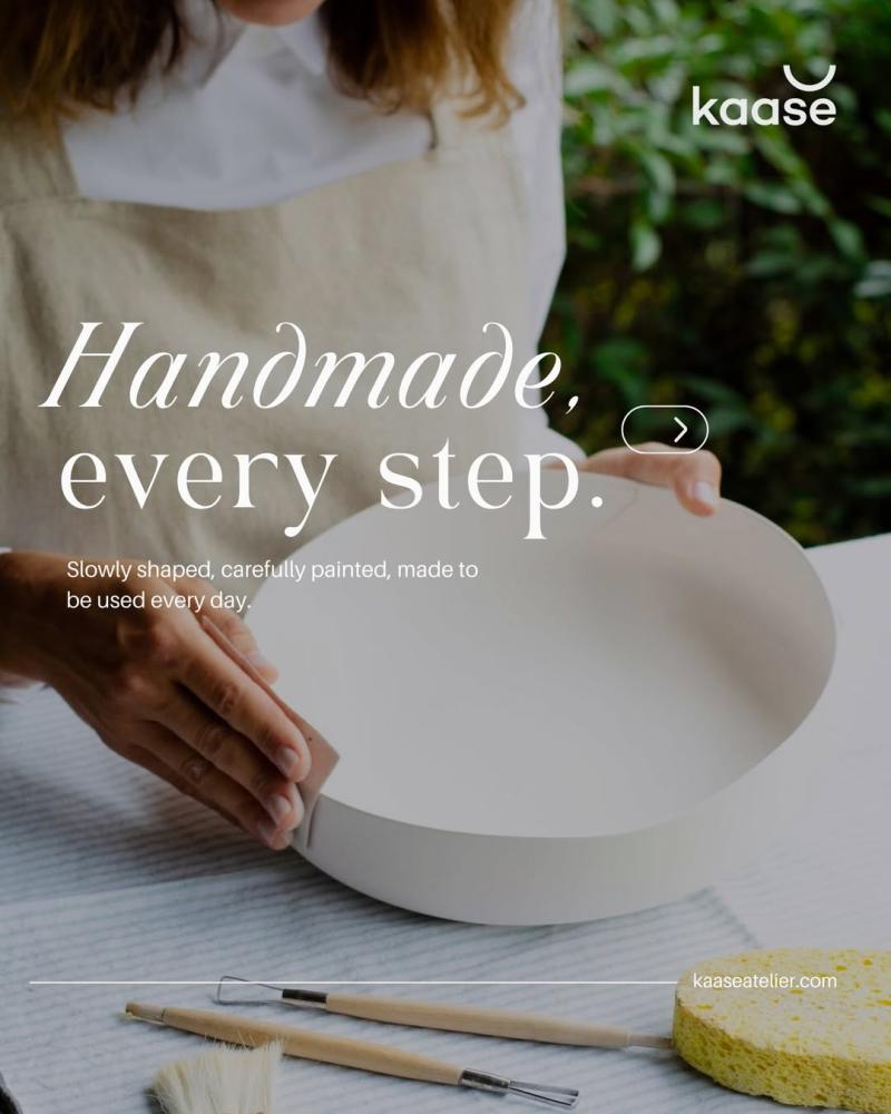 Kaase Atelier is an Istanbul-based handmade porcelain tableware studio. Each piece is hand-cast with Limoges porcelain clay and fired at 1250°C. Collections include Macaron, Dots & Stripes, and Art Series. All glazes are lead-free, food-safe, and non-toxic.
