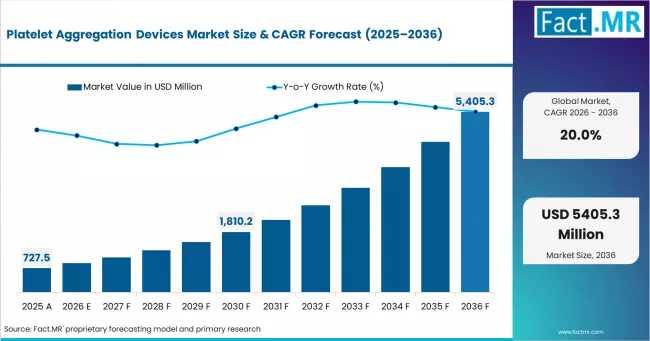 The global Platelet Aggregation Devices Market is undergoing a structural shift from niche hematology testing to routine cardiovascular care, projected to grow from USD 873 million in 2026 to a staggering USD 5.4 billion by 2036. According to the latest strategic analysis from Fact.MR, the industry is accelerating at a robust CAGR of 20.0%, fueled by the rising global burden of thrombotic conditions and the mandate for personalized antiplatelet therapy.