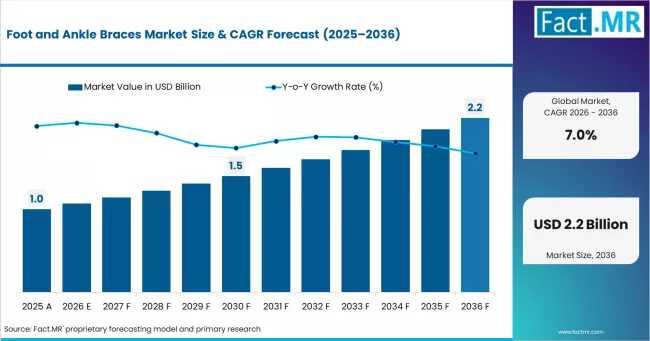 The global Foot and Ankle Braces Market is entering a phase of accelerated demand, projected to grow from USD 1.1 billion in 2026 to USD 2.2 billion by 2036. According to the latest market analysis from Fact.MR, the industry is sustaining a strong CAGR of 7.0%, driven by the dual impact of rising sports-related injuries and an expanding geriatric population requiring long-term orthopedic support.Get detailed market forecasts, competitive benchmarking, and pricing trends: