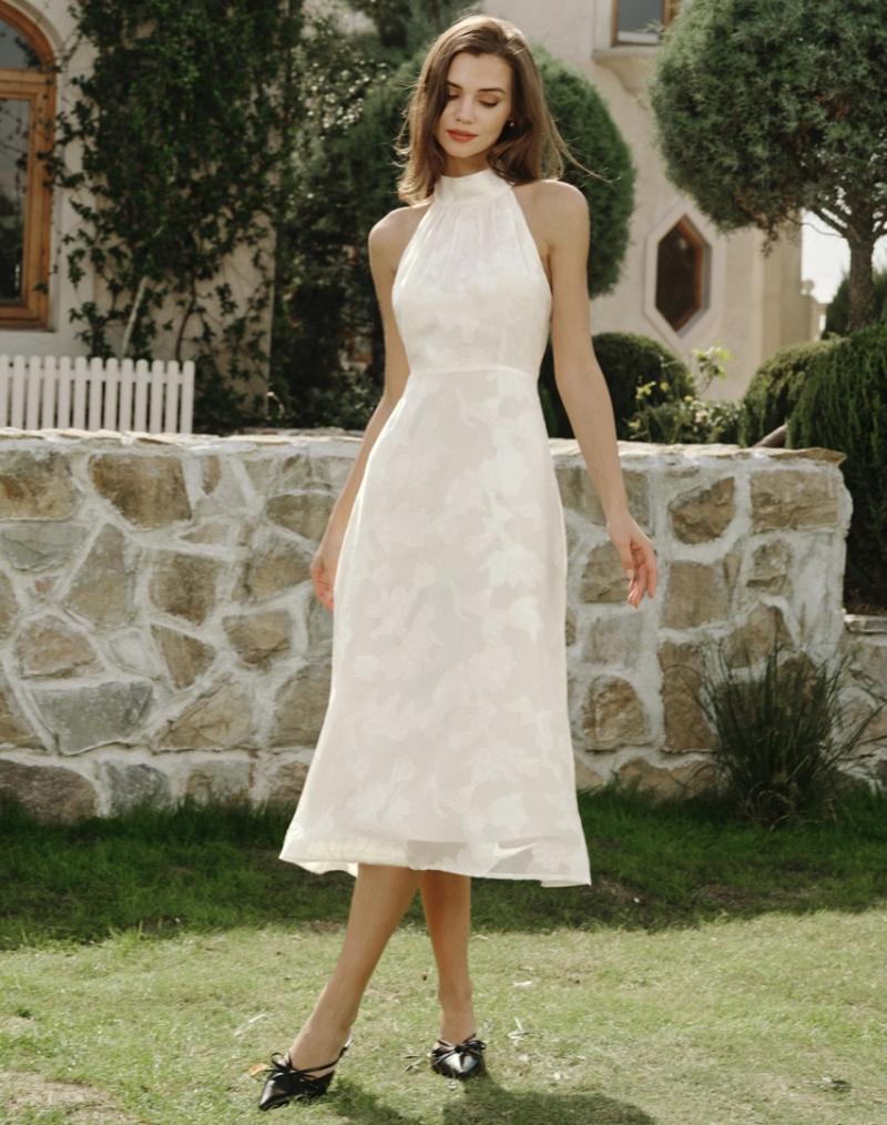 The range moves fluidly across formality levels. There are floral midi dresses with flutter sleeves for garden weddings in May, deeper-hued satin slips for autumn ceremonies, and structured cocktail dresses in jewel tones for black-tie-optional evenings. The color story this season leans into sage green, dusty rose, terracotta, and a particularly wearable shade of buttery yellow - colors that photograph beautifully and, crucially, don't compete with a white gown.