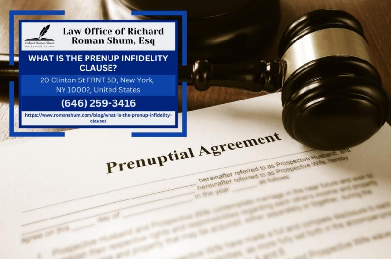 NEW YORK, NY - Couples in Manhattan considering prenuptial agreements sometimes seek to include infidelity clauses that impose financial consequences if a spouse commits adultery during the marriage, but the enforceability of such provisions under New York law remains uncertain. Manhattan family law attorney Richard Roman Shum of the Law Office of Richard Roman Shum, Esq., PLLC (https://www.romanshum.com/blog/what-is-the-prenup-infidelity-clause/) is providing guidance on what infidelity clauses are, how they are drafted,…