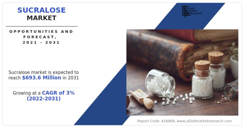 The global sucralose market garnered $518.0 million in 2021, and is estimated to generate $693.6 million by 2031, manifesting a CAGR of 3.0% from 2022 to 2031.