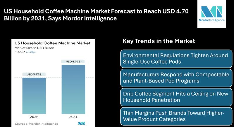 Mordor Intelligence has published a new report on the US household coffee machine market, offering a comprehensive analysis of trends, growth drivers, and future projections