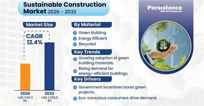 The global Sustainable Construction Market is experiencing remarkable growth as environmental concerns, regulatory mandates, and the push for energy-efficient infrastructure reshape the construction industry. According to the latest study by Persistence Market Research, the market is expected to be valued at US$ 545.0 billion in 2026 and is projected to reach US$ 1,238.0 billion by 2033, expanding at a CAGR of 12.4% during the forecast period. This growth trajectory highlights…