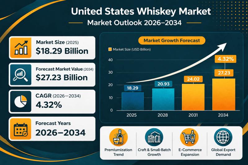 IMARC Group has recently released a new research study titled "United States Whiskey Market Size, Share, Trends and Forecast by Product Type, Quality, Distribution Channel, and Region, 2026-2034", offers a detailed analysis of the market drivers, segmentation, growth opportunities, trends and competitive landscape to understand the current and future market scenarios.
