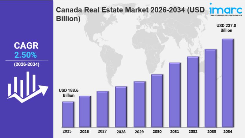 IMARC Group has recently released a new research study titled "Canada Real Estate Market Report by Property Type (Residential Buildings and Dwellings, Commercial Complexes, Industrial Infrastructure, Government Infrastructure), Business (Sales, Rental, Lease), and Region 2026-2034", offers a detailed analysis of the market drivers, segmentation, growth opportunities, trends and competitive landscape to understand the current and future market scenarios.