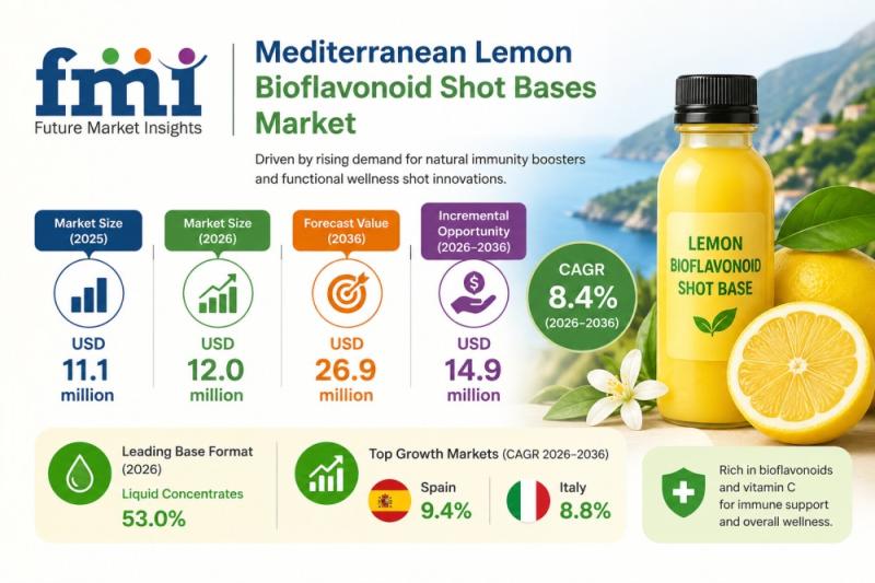 The Mediterranean lemon bioflavonoid shot bases market is gaining strong momentum as demand rises for compact, functional wellness beverages with natural citrus-derived health benefits. Lemon bioflavonoids, particularly eriocitrin-rich extracts sourced from peel, are increasingly used in immunity, antioxidant, and metabolism-focused shots due to their functional efficacy and clean-label appeal. According to the latest analysis, the market was valued at USD 11.1 million in 2025 and is projected to grow to…