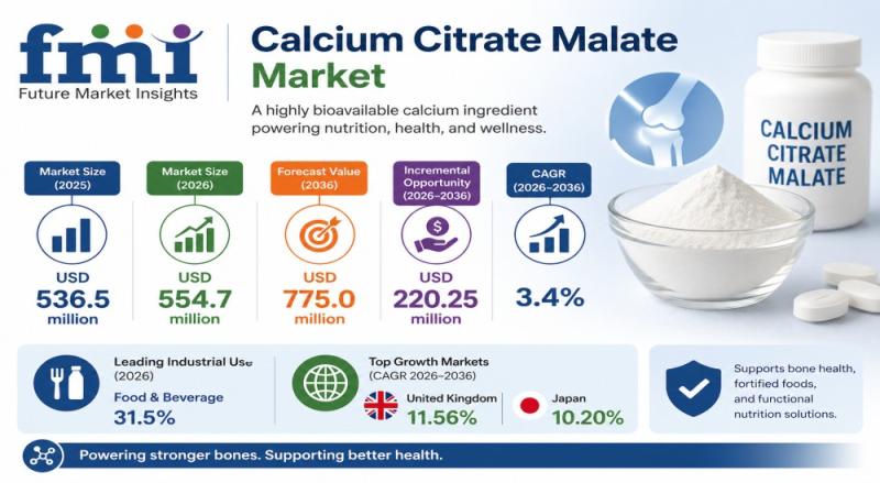 Calcium Citrate Malate Market to Reach USD 775.0 Million by 2036, Driven by Bone …