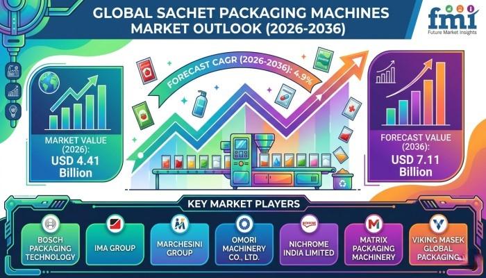According to the latest market analysis by Future Market Insights, the sachet packaging machines market is entering a steady growth phase as industries increasingly adopt high-speed, precision-driven packaging systems. The market is valued at USD 4.41 billion in 2026 and is projected to reach USD 7.11 billion by 2036, expanding at a CAGR of 4.9%. The sector is expected to generate an incremental opportunity of USD 2.70 billion over the…