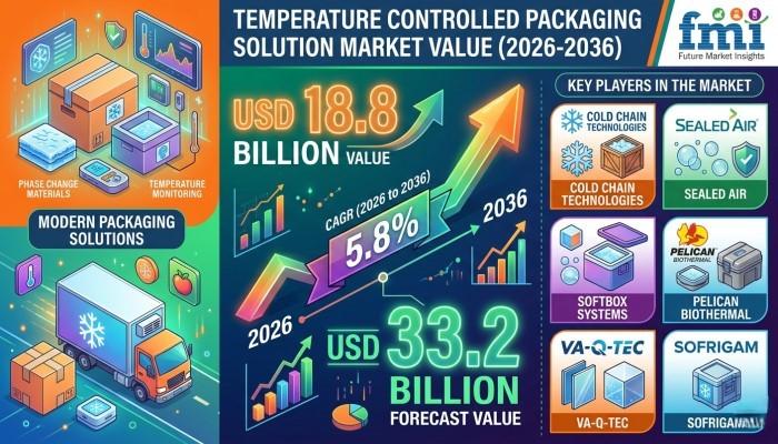 According to the latest market analysis by Future Market Insights, the temperature controlled packaging solutions market is entering a sustained growth phase as pharmaceutical logistics and cold chain compliance requirements intensify globally. The market, valued at USD 18.8 billion in 2026, is projected to reach USD 33.2 billion by 2036, expanding at a CAGR of 5.8%. The sector is expected to generate an incremental opportunity of USD 14.4 billion over…