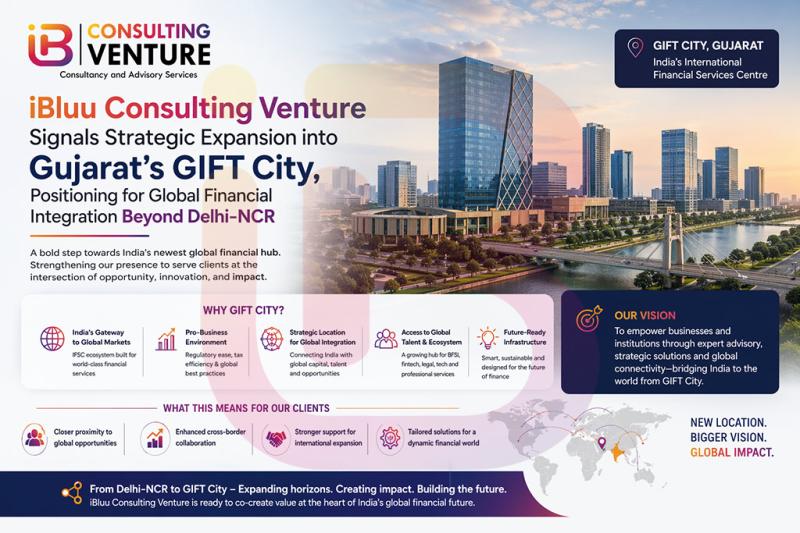 In a calibrated move aligned with India's evolving financial architecture, iBluu Consulting Venture Private Limited (iBCV), a division of iBluu Corporations, has announced its strategic intent to establish its first office outside Delhi-NCR in GIFT City, Gujarat's flagship international financial services hub.