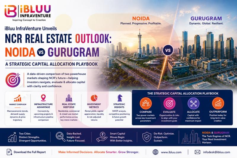 iBluu InfraVenture Private Limited (iBIV), the real estate consulting and advisory arm of iBluu Corporations, has released its latest NCR Real Estate Outlook, presenting a rigorous, investor-centric comparison between Noida and Gurugram-two of the most influential urban real estate markets within the National Capital Region.