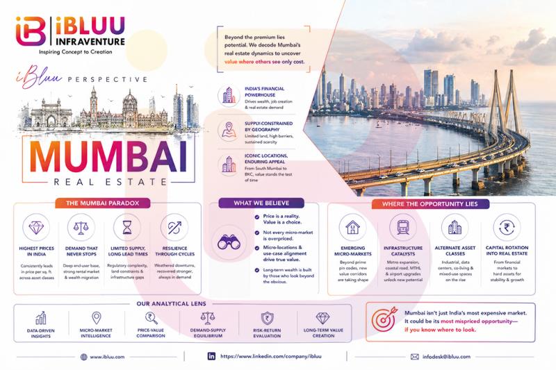 In a sharply framed and analytically rigorous outlook, iBluu InfraVenture Private Limited (iBIV) has released its latest perspective on the real estate market of Mumbai-positioning the city not as an overheated housing market, but as a structurally evolving capital system shaped by scarcity, global capital flows, and infrastructure-led repricing.The report challenges prevailing narratives around affordability and valuation, arguing that Mumbai's pricing dynamics are not irrational but a direct function of constrained land supply, concentrated wealth, and increasing institutional participation.