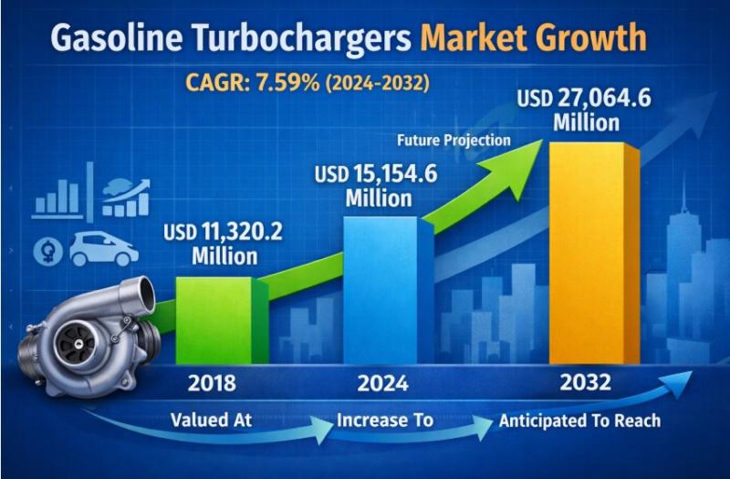 Global Gasoline Turbochargers Market Overview The global gasoline turbochargers market has demonstrated strong and sustained expansion over the past several years, reflecting the automotive industry's ongoing pursuit of efficiency, performance optimization, and emissions reduction. The market size, valued at USD 11,320.2 million in 2018, grew significantly to USD 15,154.6 million by 2024. Looking ahead, the market is projected to reach USD 27,064.6 million by 2032, registering a compound annual growth rate