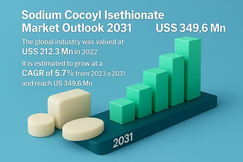 The global sodium cocoyl isethionate (SCI) market continues to experience robust growth as consumer preferences shift toward gentle, environmentally safe, and sulfate-free personal care ingredients. According to the latest industry assessment, the global sodium cocoyl isethionate market-valued at US$ 212.3 Mn in 2022-is set to expand at a CAGR of 5.7% from 2023 to 2031, ultimately reaching US$ 349.6 Mn by 2031.