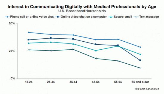 • Interest in Communicating Digitally with Medical Professionals by Age (Q4/16)