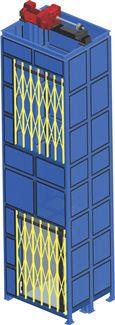 Modular design with MS tubular structure with vertical 'H' beams. Carriage is MS fabricated tubular structure with checkered platform. Carriage is covered with MS perforated sheet at non-operating sides, operating sides are provided with collapsible doors. Vertical structure has provided with MS bracing and can be also covered with MS perforated sheet optionally.