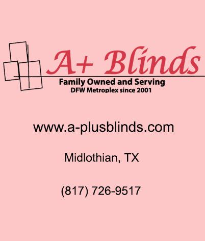 A+ Blinds can be reached by calling (817) 726-9517. For more information visit www.a-plusblinds.com or email info@APlusBlinds.net.