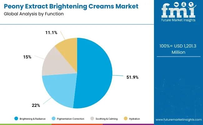 The global peony extract brightening creams market is set for remarkable growth, expanding from USD 1,201.3 million in 2025 to USD 3,901.0 million by 2035, reflecting a compound annual growth rate (CAGR) of 12.5%. The market's 224.9% growth over the forecast period underscores the rising global consumer preference for natural, botanical, and premium skincare solutions that address brightening, radiance, and anti-aging concerns.