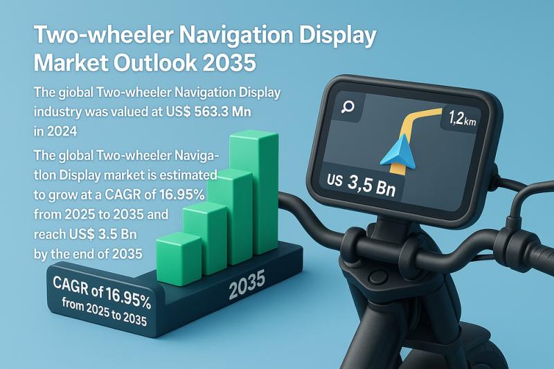 The global Two-Wheeler Navigation Display Market is entering a new phase of accelerated growth driven by rapid digitalization, rising motorcycle adoption, and strong demand for advanced rider-assist technologies. According to new industry analysis, the market-valued at US$ 563.3 Mn in 2024-is projected to reach US$ 3.5 Bn by 2035, registering an impressive CAGR of 16.95% during the forecast period (2025-2035).