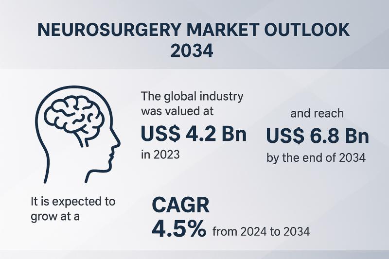 The global neurosurgery market, valued at US$ 4.2 Bn in 2023, continues to evolve at a decisive pace as neurological disorders rise worldwide and healthcare infrastructure adopts next-generation surgical technologies. According to the latest industry projections, the market is expected to reach US$ 6.8 Bn by 2034, registering a CAGR of 4.5% from 2024 to 2034. The forecast reflects a steady shift toward precision-based neurosurgical interventions, AI-driven diagnostic support systems,…
