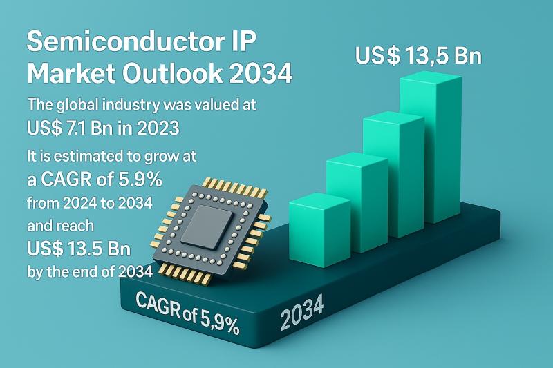 The global Semiconductor Intellectual Property (IP) Market is entering a transformative phase supported by the rapid rise of AI, government-backed defense modernization programs, and growing demand for highly secure chip architectures across industries. According to market projections, the semiconductor IP industry-valued at US$ 7.1 Bn in 2023-is forecast to grow at a CAGR of 5.9% from 2024 to 2034, reaching an estimated US$ 13.5 Bn by the end of the…