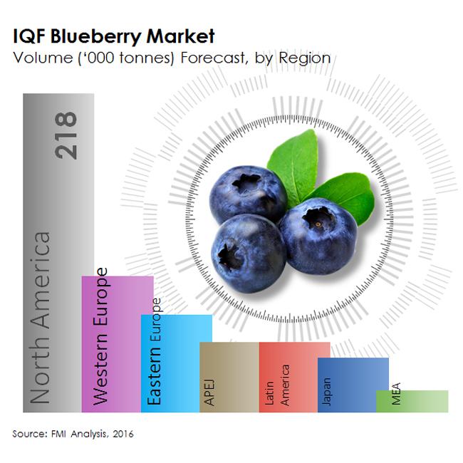 IQF fruit revenues in North America, the largest market for IQF fruits, are expected to reach about 870 thousand tonnes in 2016, witnessing a y-o-y growth of 5.9% over 2015. Rising awareness, increasing purchasing power, and availability of a wide range of flavours will continue to propel the growth of the market in North America. Western Europe will maintain its position as the second-largest market for IQF fruits in 2016, with the market valued pegged to reach 1.3 Bn. Demand for IQF fruits in Eastern Europe is anticipated to witness a decrease owing to market saturation.