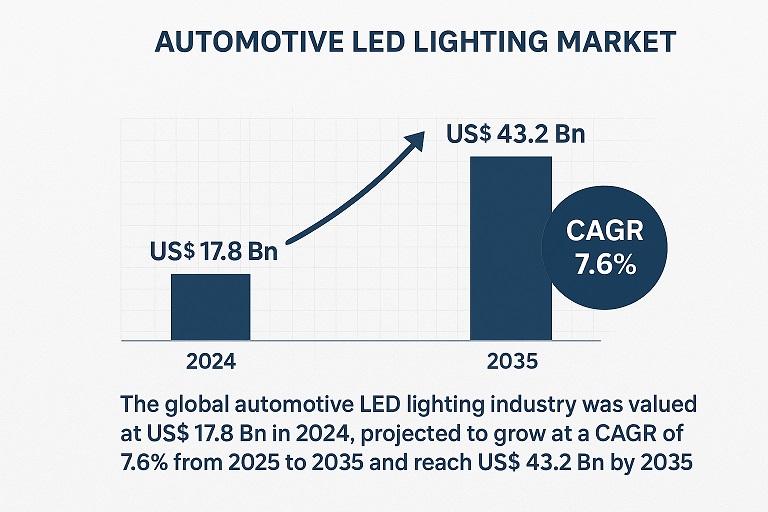 Automotive LED Lighting Market Set to Hit USD 43.2 Billion by 2035 Amid Rising D …