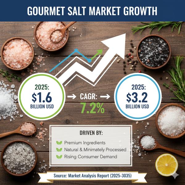 The global gourmet salt market is projected to grow from USD 1.6 billion in 2025 to USD 3.2 billion by 2035, reflecting a strong CAGR of 7.2%, according to new industry assessments. The surge is driven by rising consumer preference for premium, natural, and minimally processed food ingredients, alongside expanding adoption across fine dining, packaged foods, and artisanal meat processing.