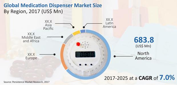 Factors as such are anticipated to support the growing use of medication dispenser in ambulatory surgical centers, hospitals and nursing homes. Moreover, the need to eliminate manual task of dispensing medicines is further boosting the demand for medication dispensing systems of late. As per the latest report published by Persistence Market Research, the global medication dispenser market will reach a valuation of US$ 1,824.7 Mn, riding at a CAGR of 7.0% over the forecast period (2017–2025).