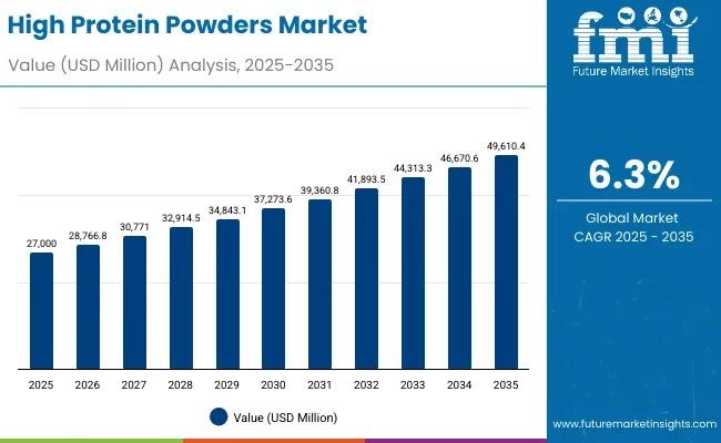 The global high protein powders market is entering a phase of structured and resilient expansion, supported by rising fitness participation, modernization of wellness infrastructure, and the mainstreaming of performance nutrition across diverse consumer groups. Valued at USD 27 billion in 2025, the market is projected to reach USD 49.6 billion by 2035, expanding at a CAGR of 6.3% over the forecast period. This growth reflects a transition from niche bodybuilding…