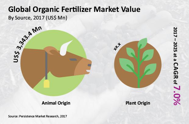 According to Persistence Market Research’s analysis, demand for animal-based organic fertilizers is higher than plant-based variants. While 6.84 million tonnes of plant-origin organic fertilizers were sold in 2016, animal-origin organic fertilizer volume was pegged at 10.15 million tonnes.
