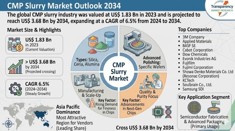 CMP Slurry Market to Reach US$ 3.68 Bn by 2034, Driven by Advanced Semiconductor …