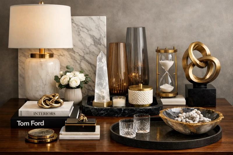 Curated luxury home accents are high-end decorative items selected for their aesthetic appeal and quality, aimed at enhancing the beauty and functionality of living spaces, reflecting individual tastes and lifestyles, and increasingly sought after by consumers looking to create personalized and stylish environments in their homes.